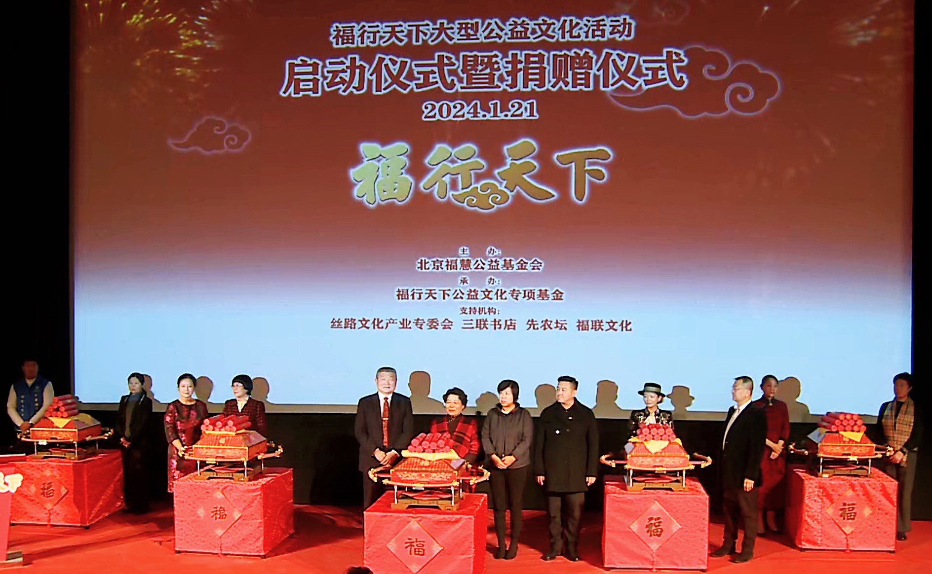 启动仪式在中华世纪坛隆重举行,100多位热心公益文化事业的各界人士出席了活动,福行天下大型公益文化活动总顾问、北京大学楼宇烈教授、著名评书艺术家、原中国文联副主席刘兰芳先生分别向启动仪式发来了视频致辞和贺信。福行天下顾问委员会主席蒋坚永先生、中国少年儿童基金会原副理事长朱锡生先生、中国红色文化发展中心国际交流专委会秘书长江南女士、北京古代建筑博物馆馆长薛俭先生在启动仪式上分别致辞。