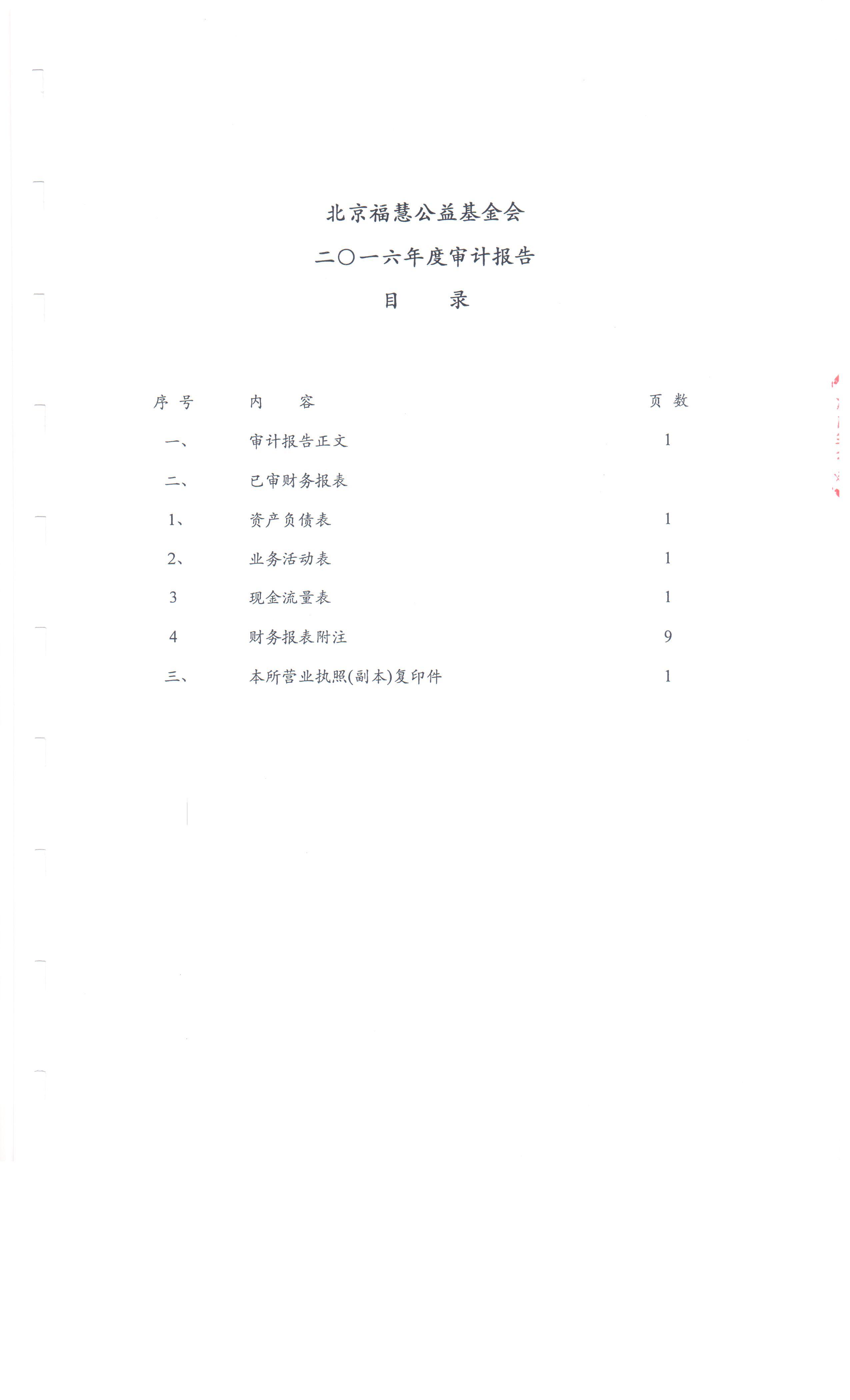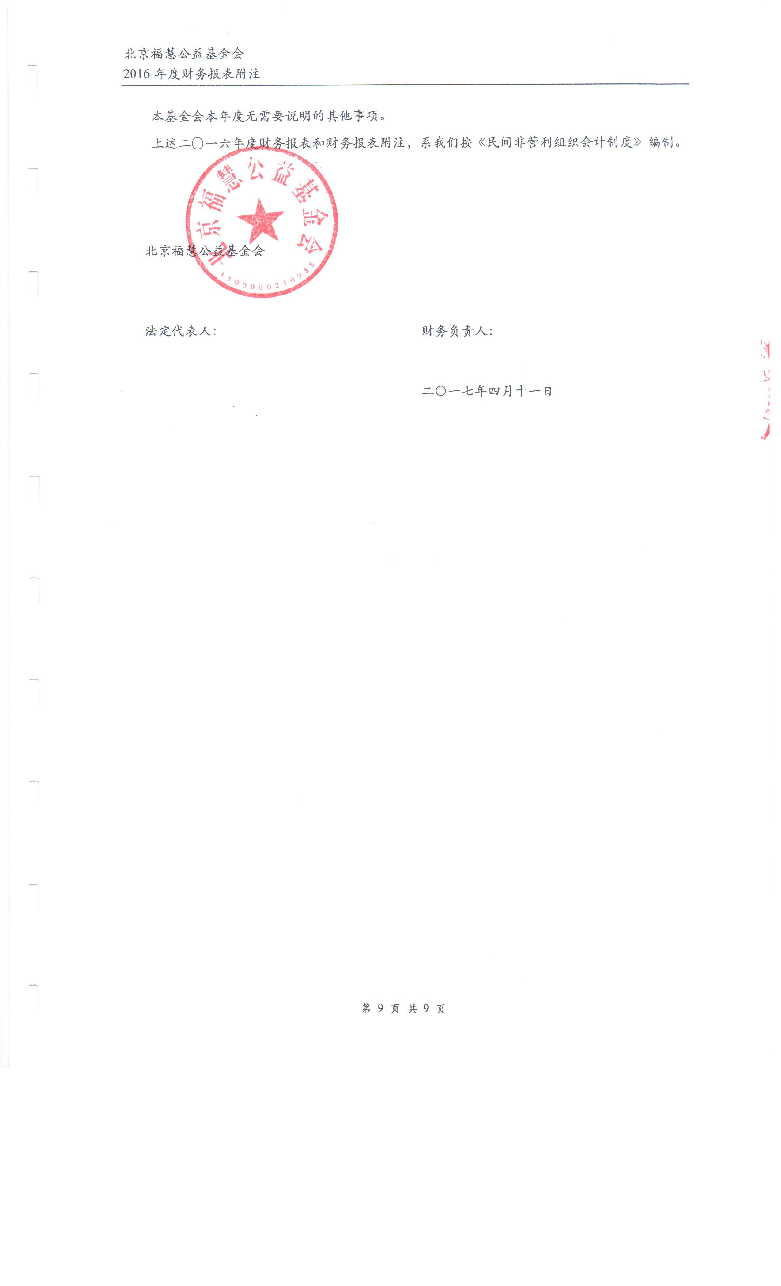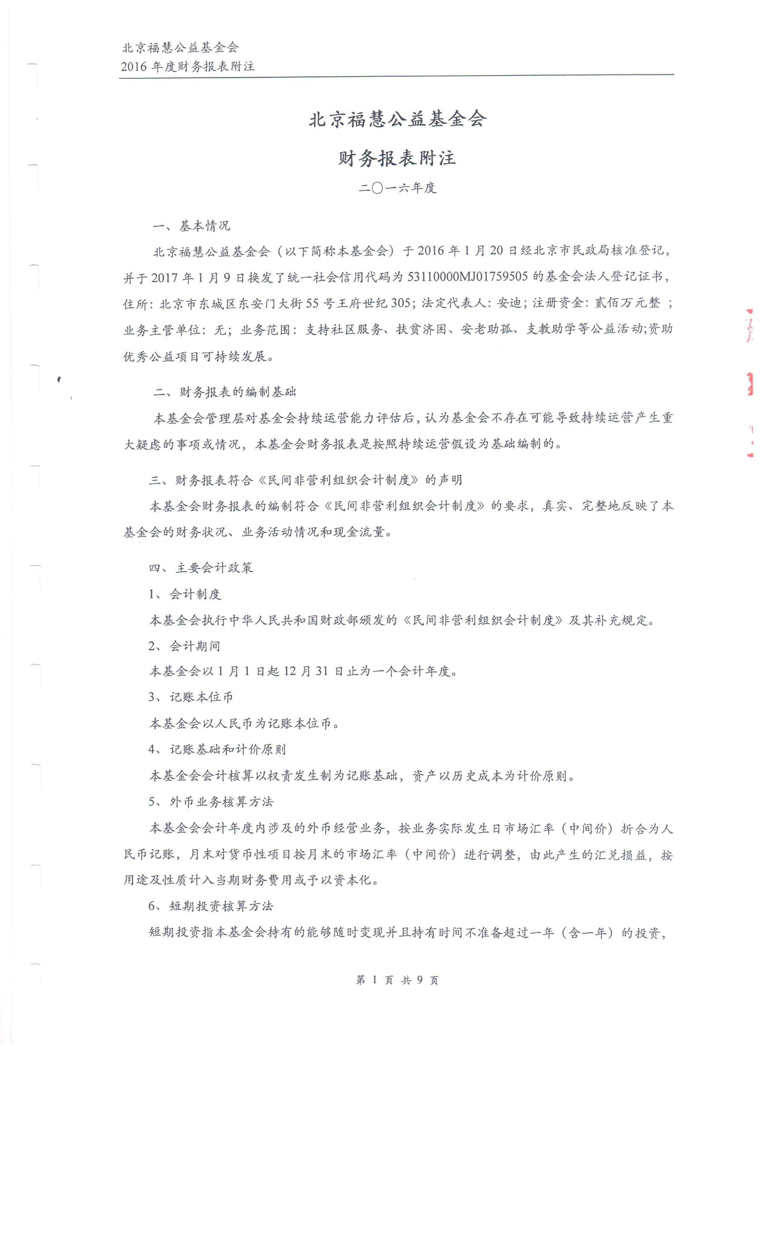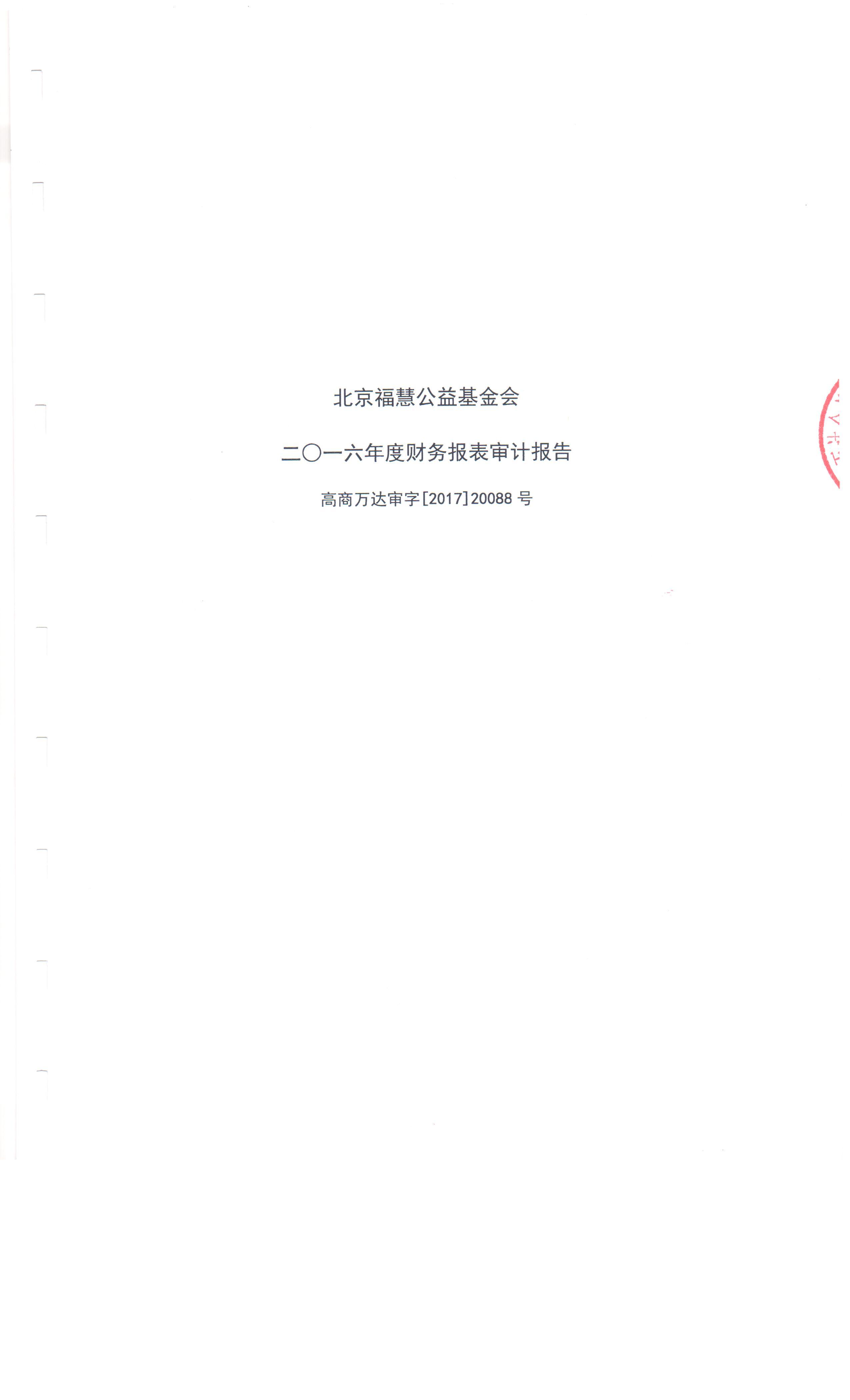 北京福慧公益基金会 2016年度财务审计报告