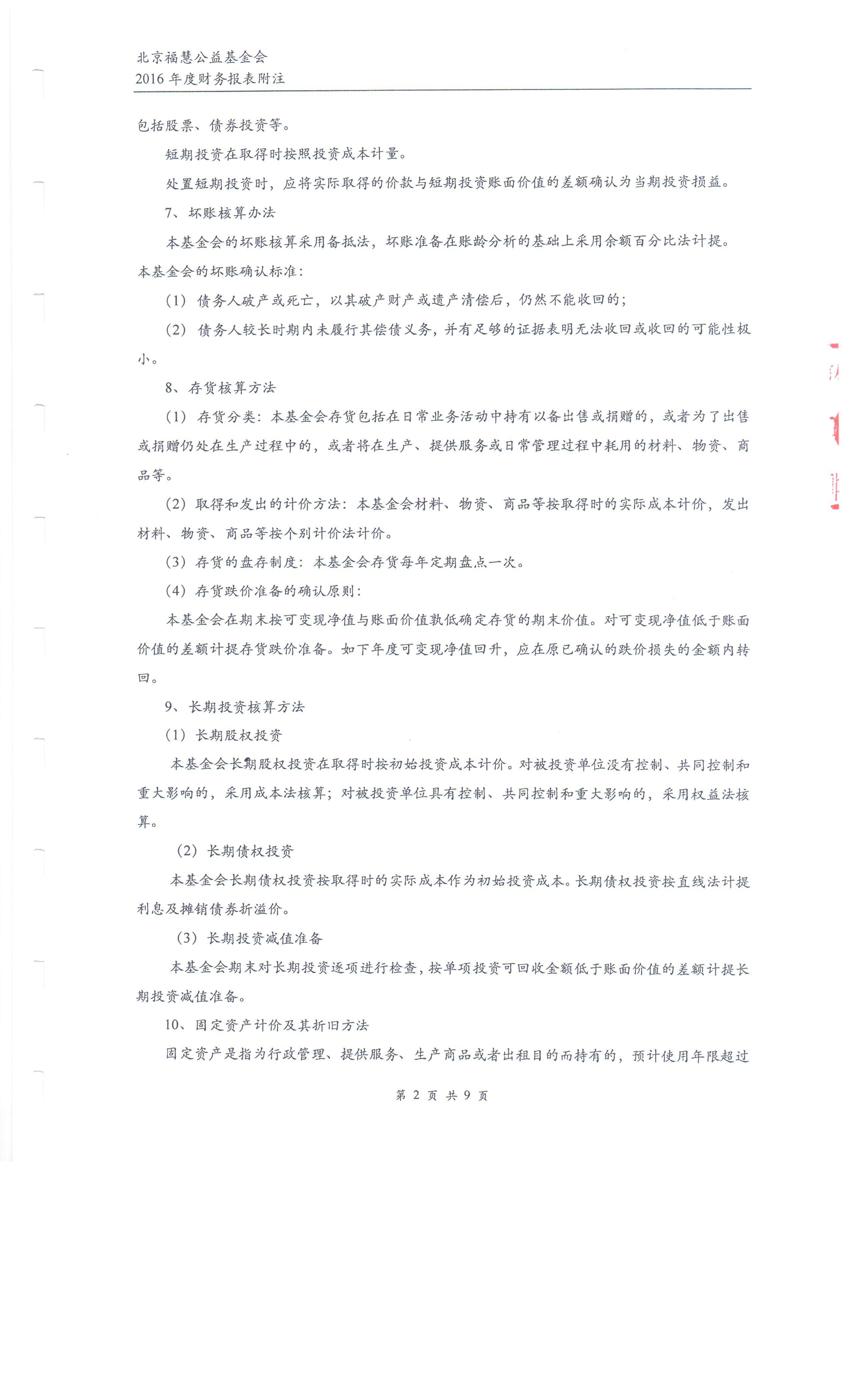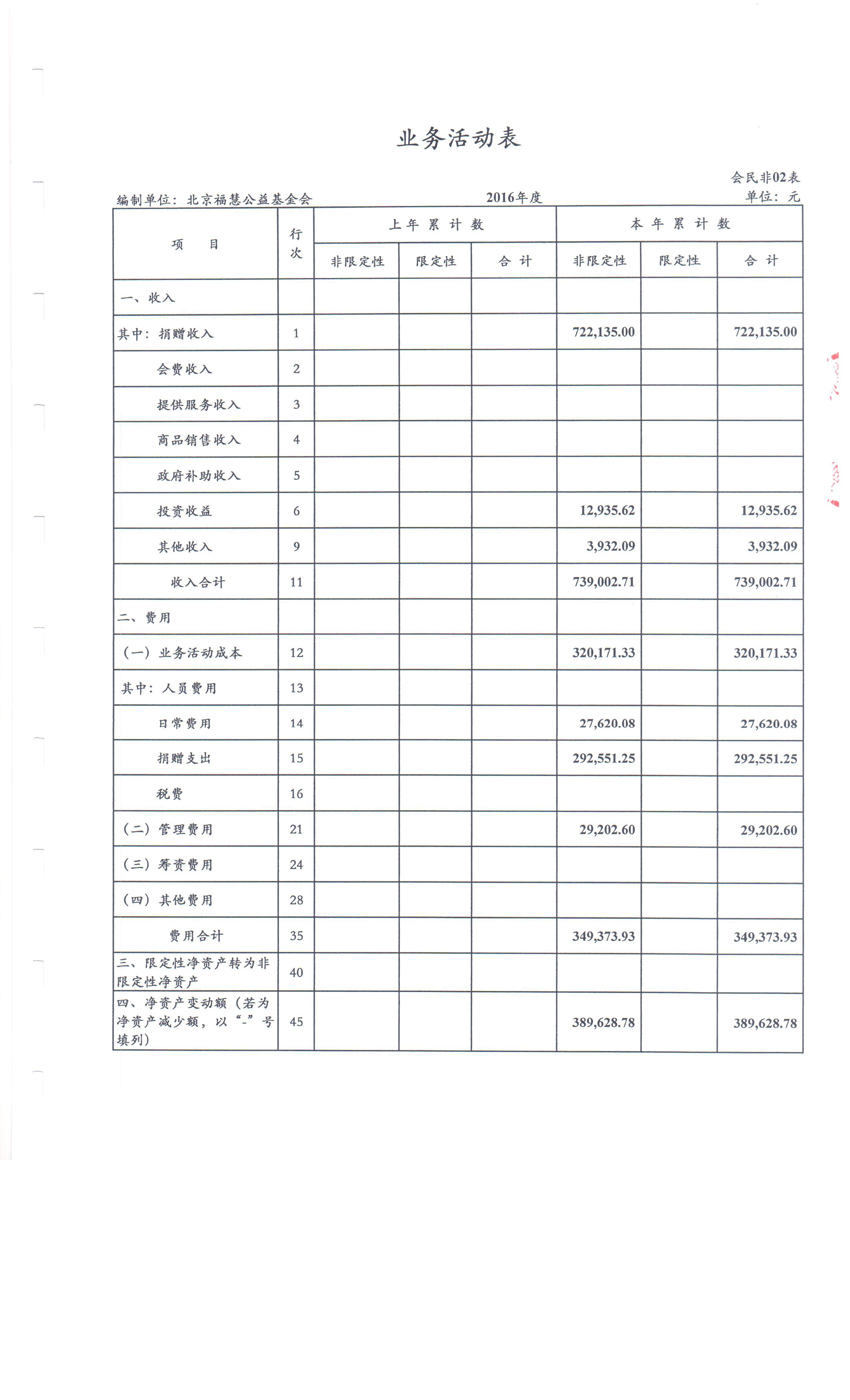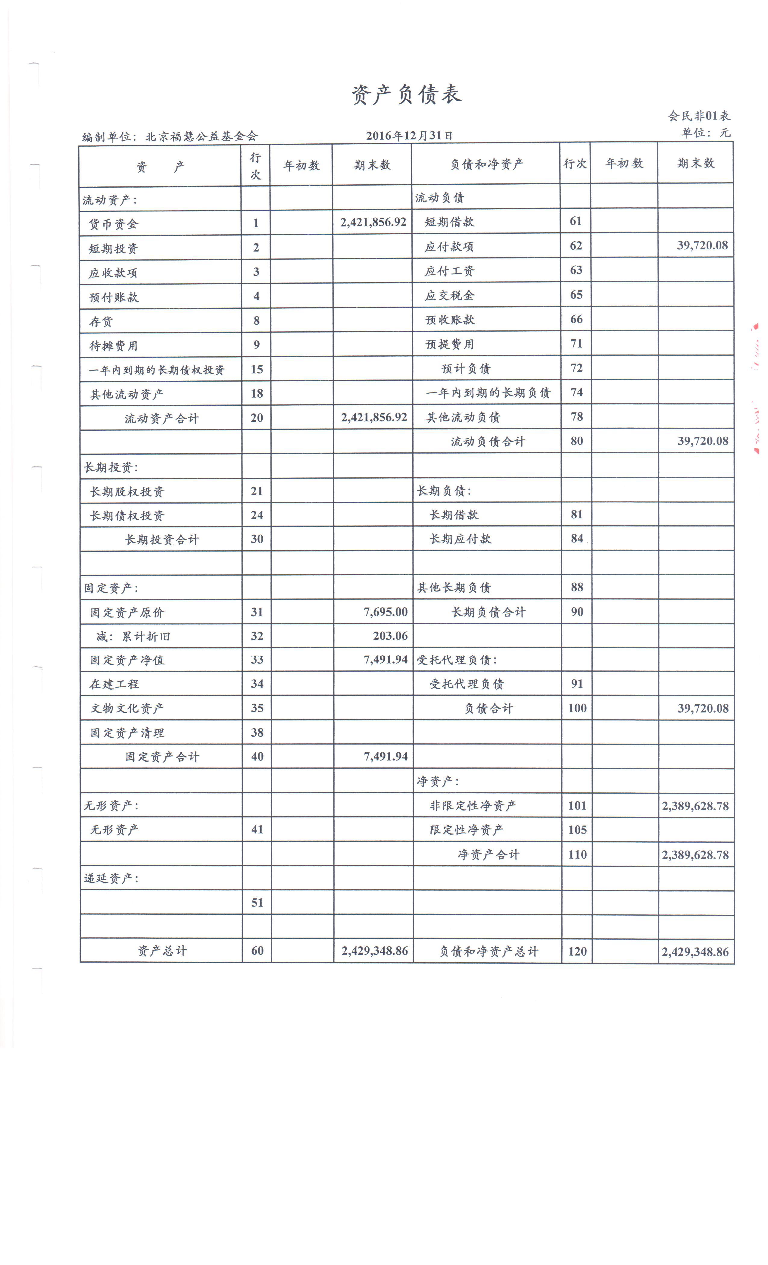 北京福慧公益基金会 2016年度财务审计报告
