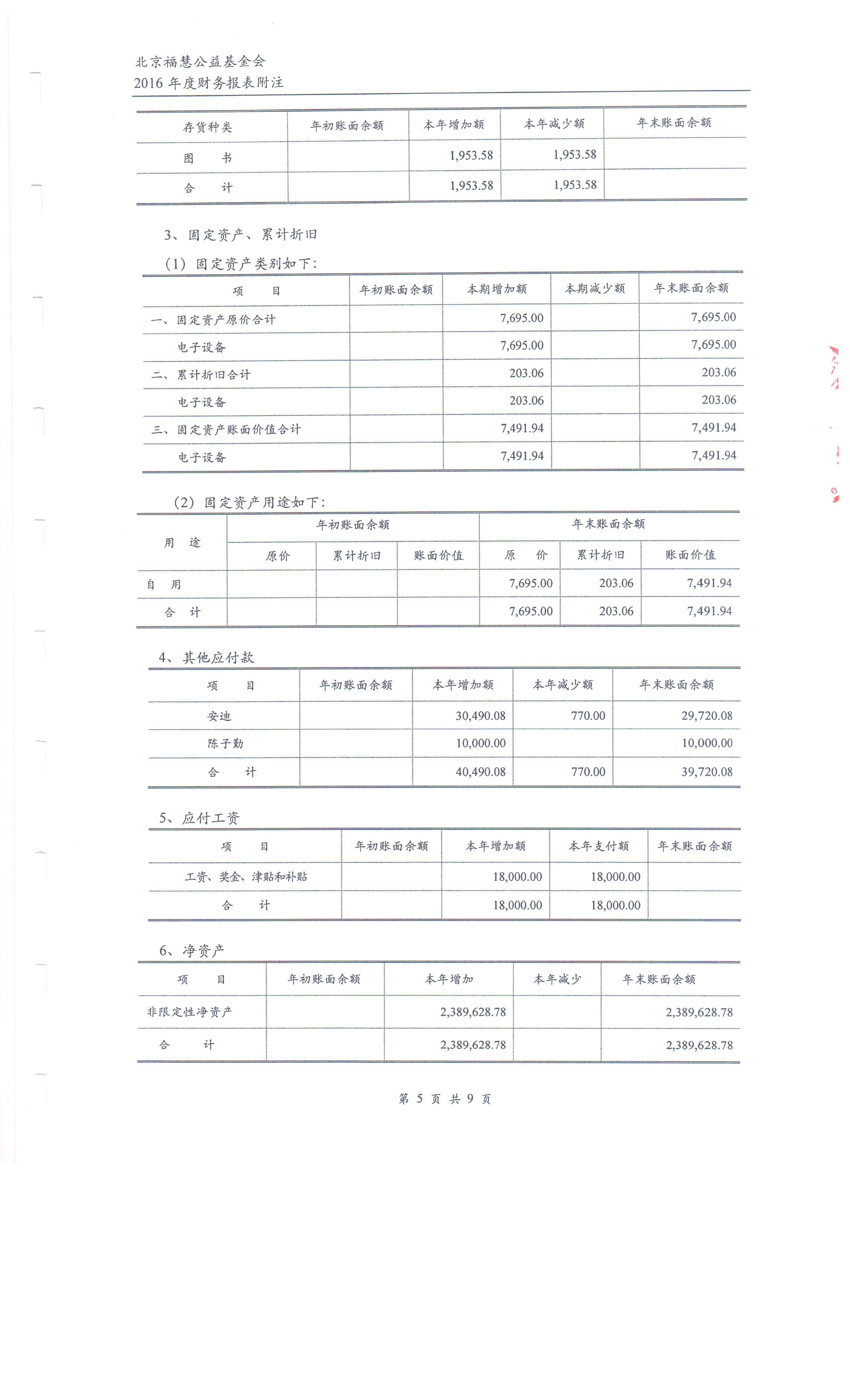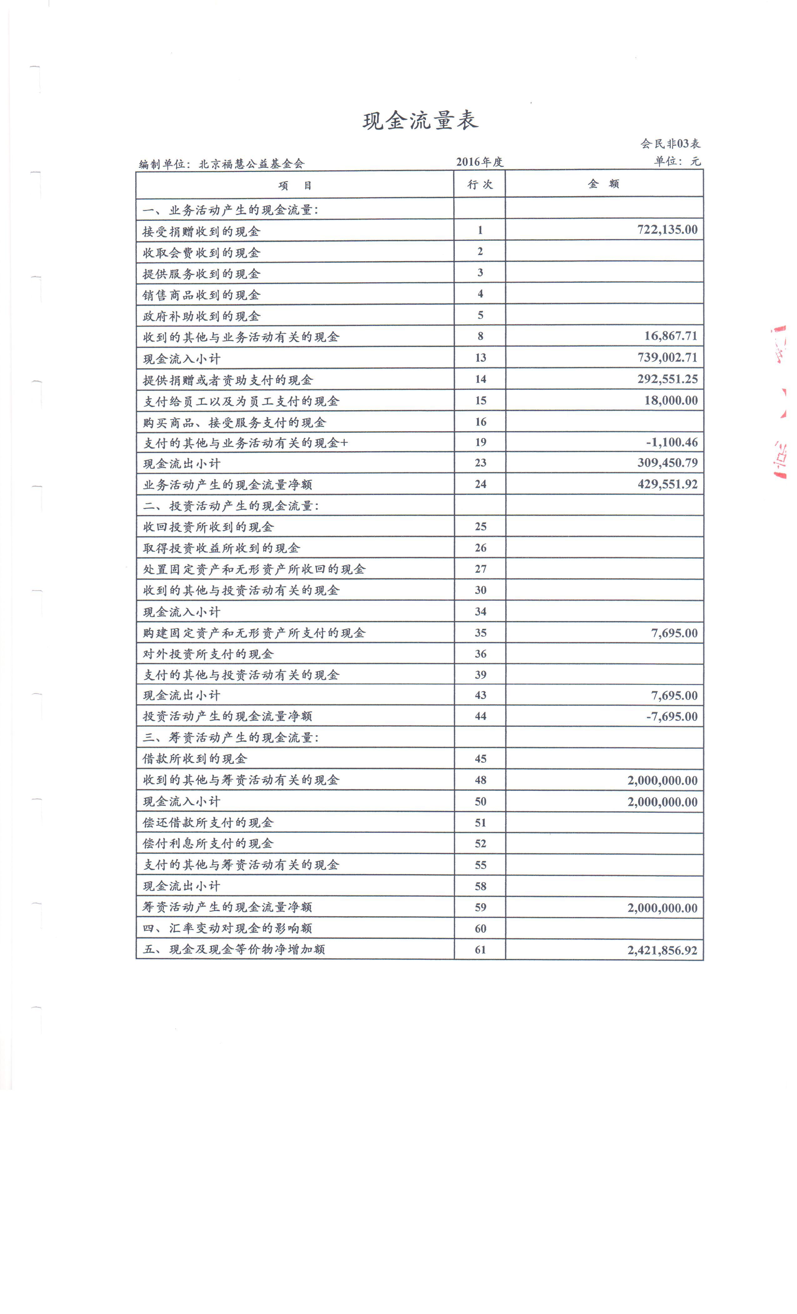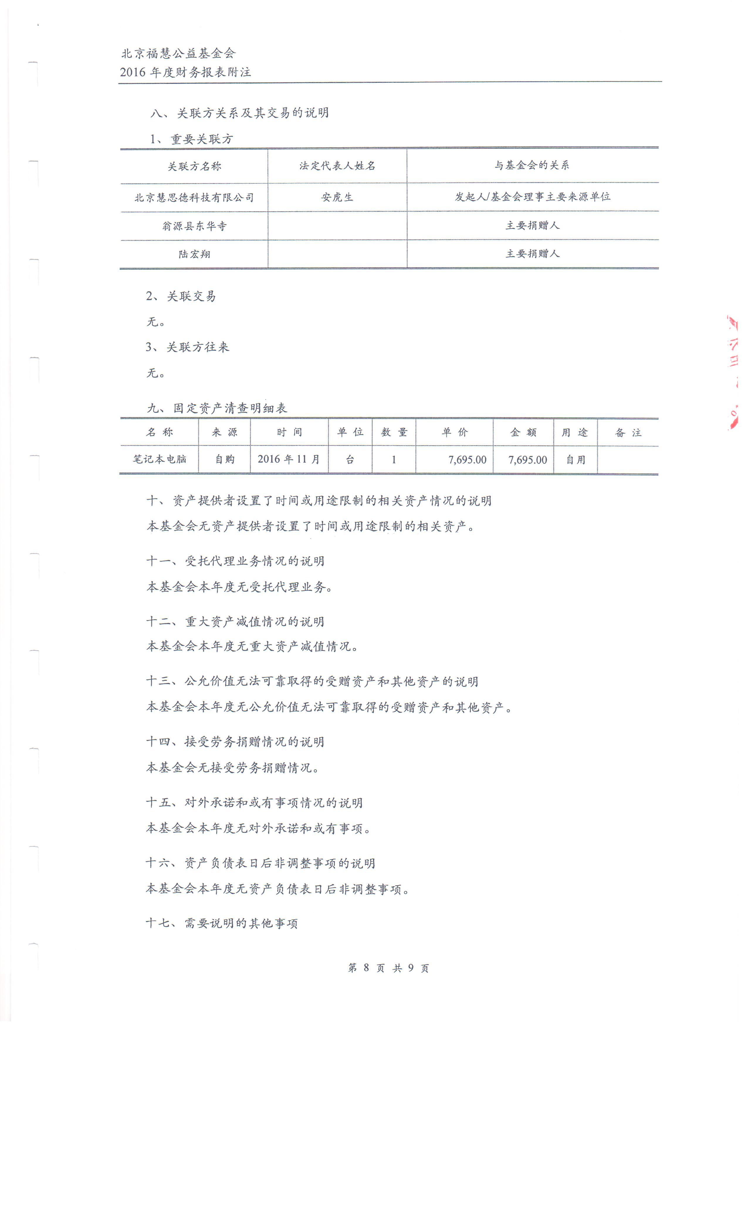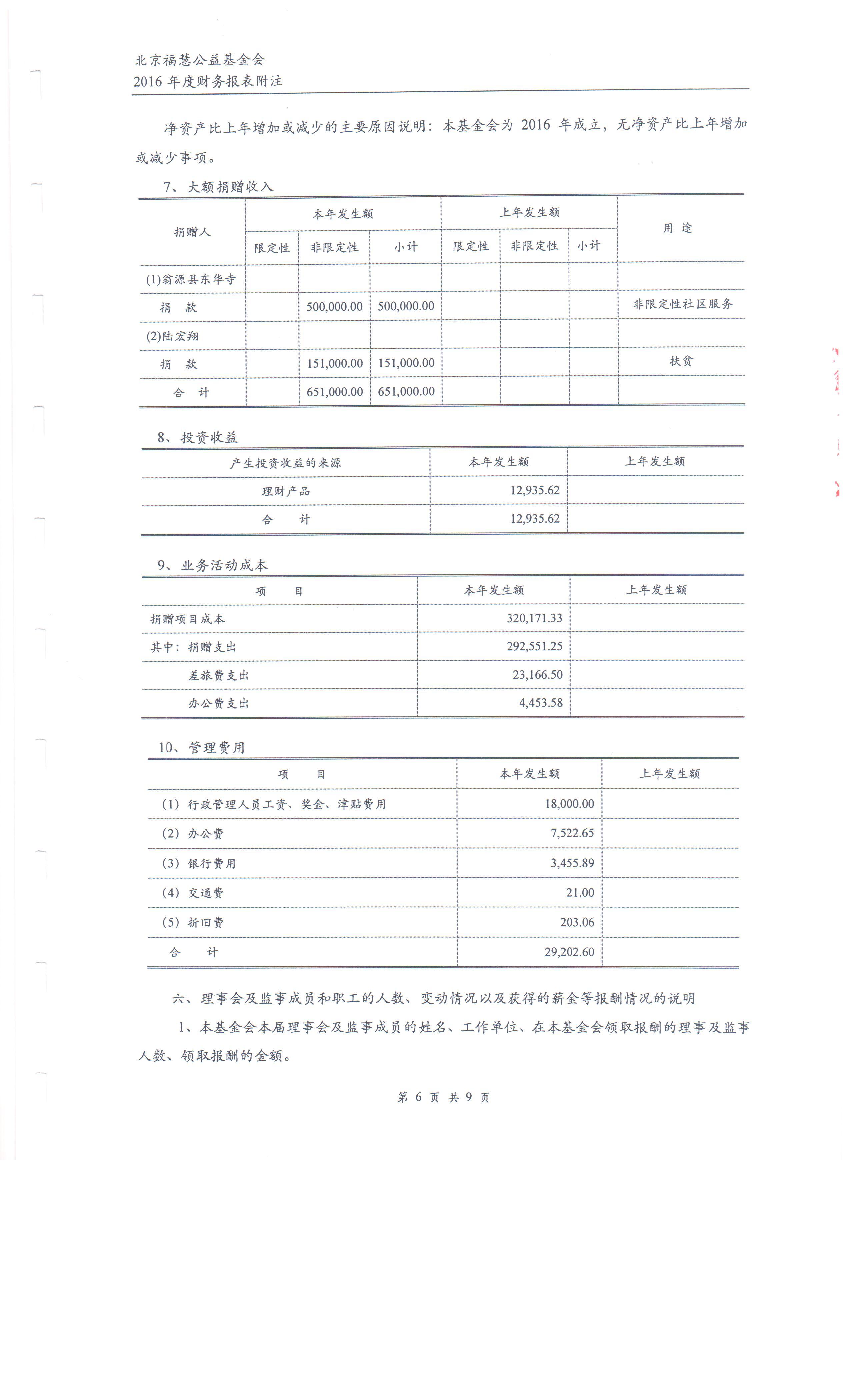 北京福慧公益基金会 2016年度财务审计报告