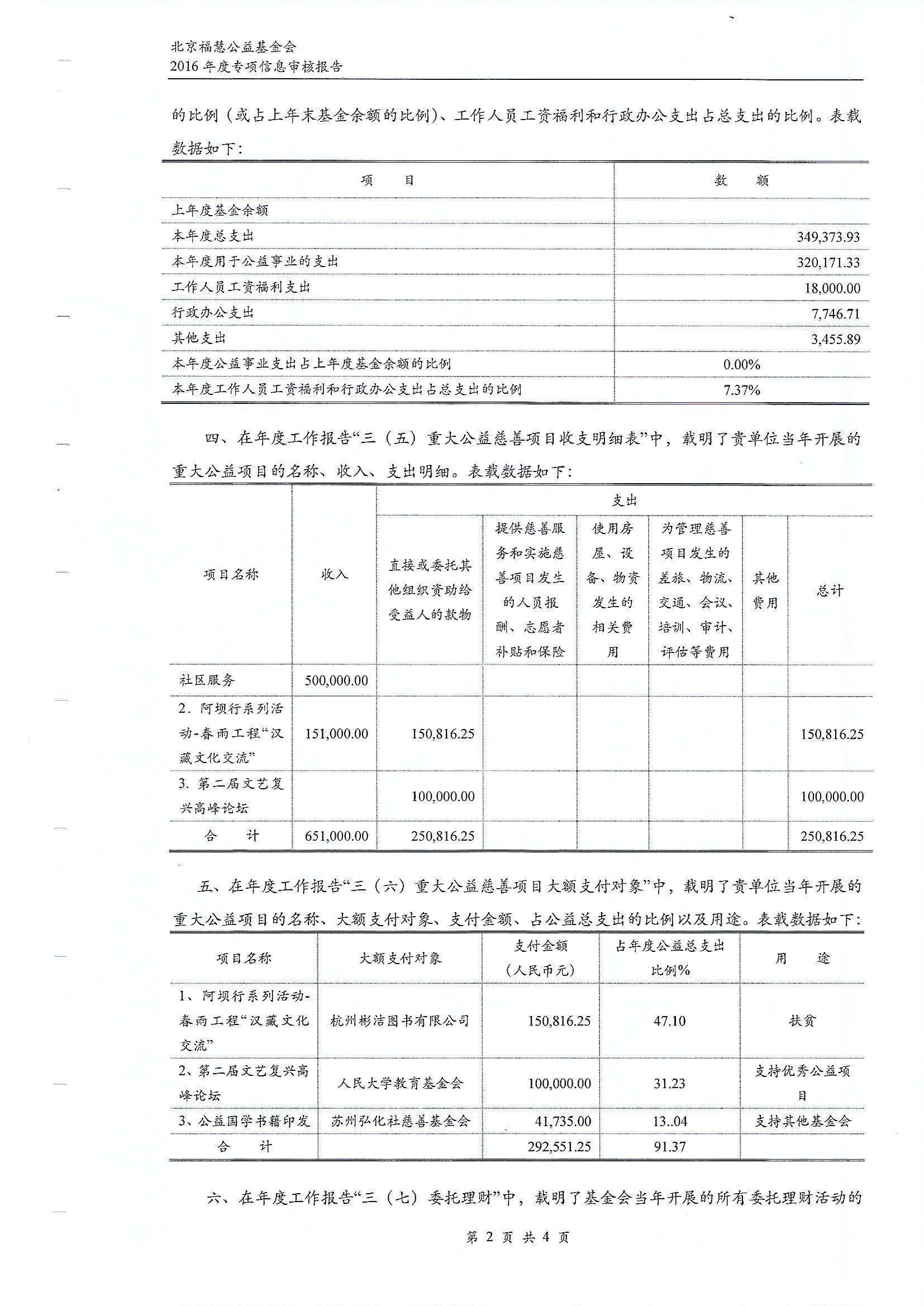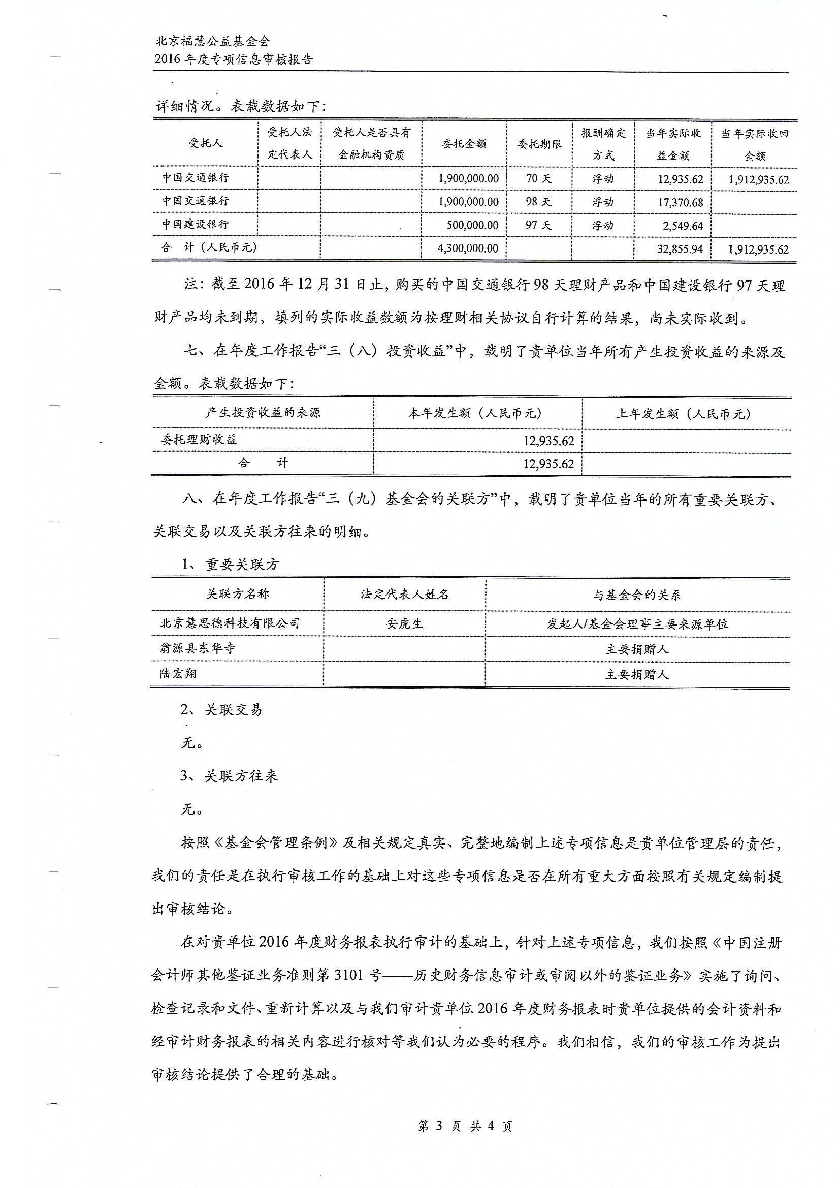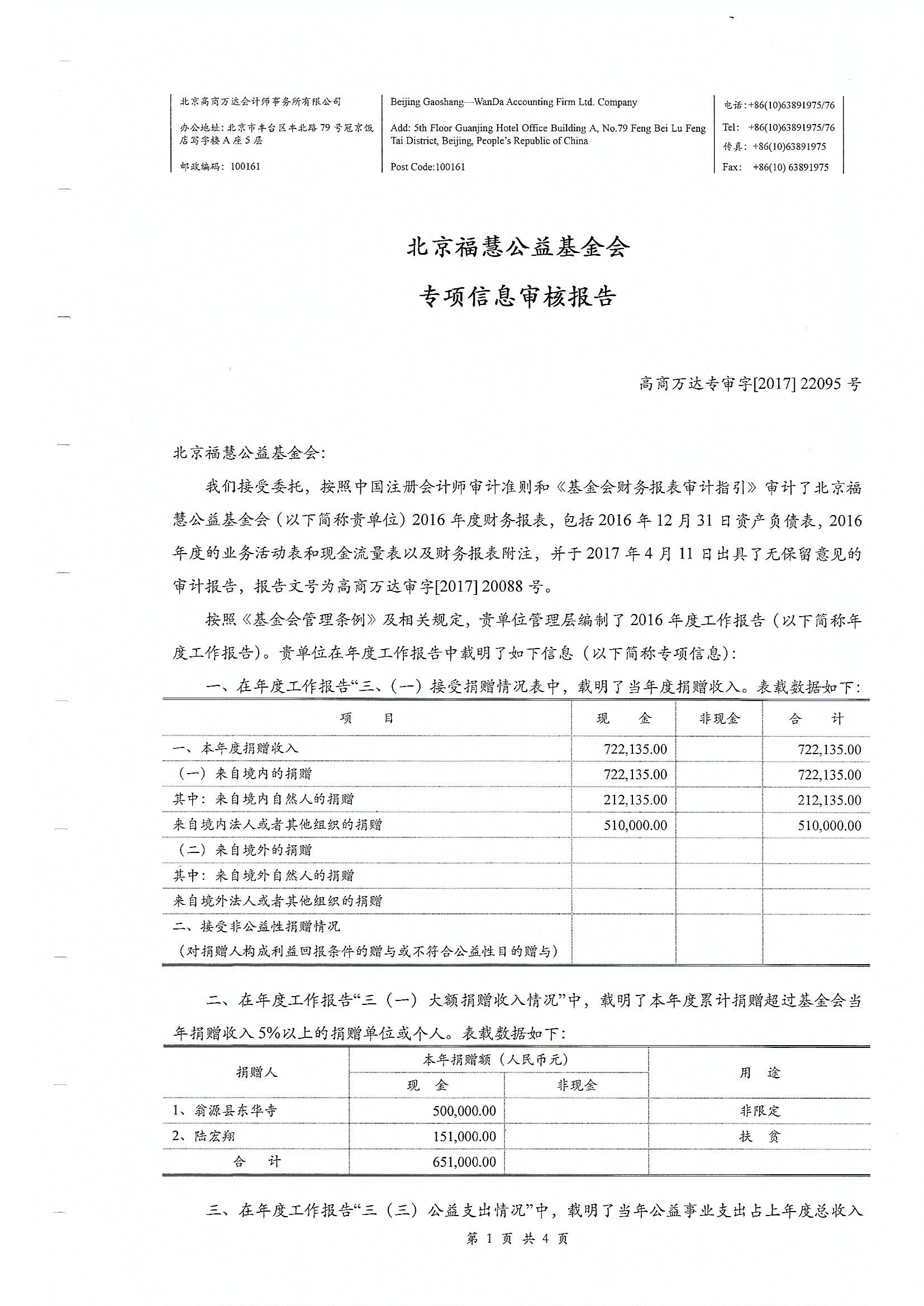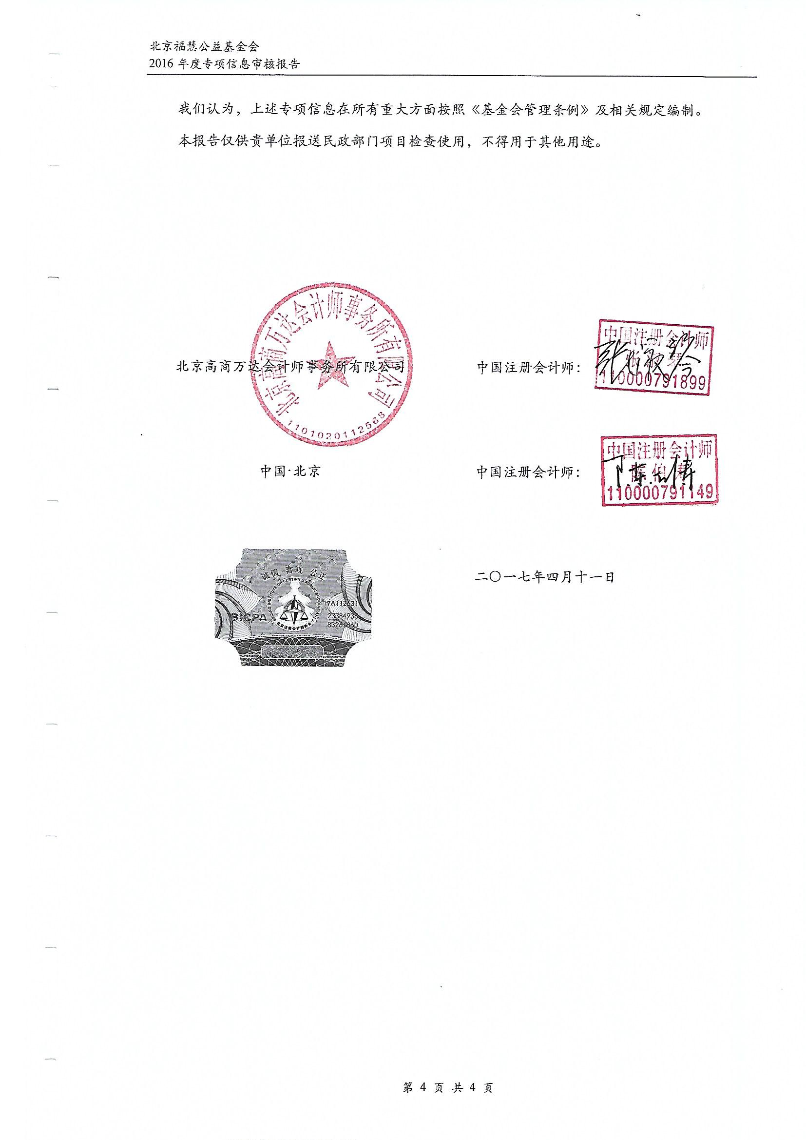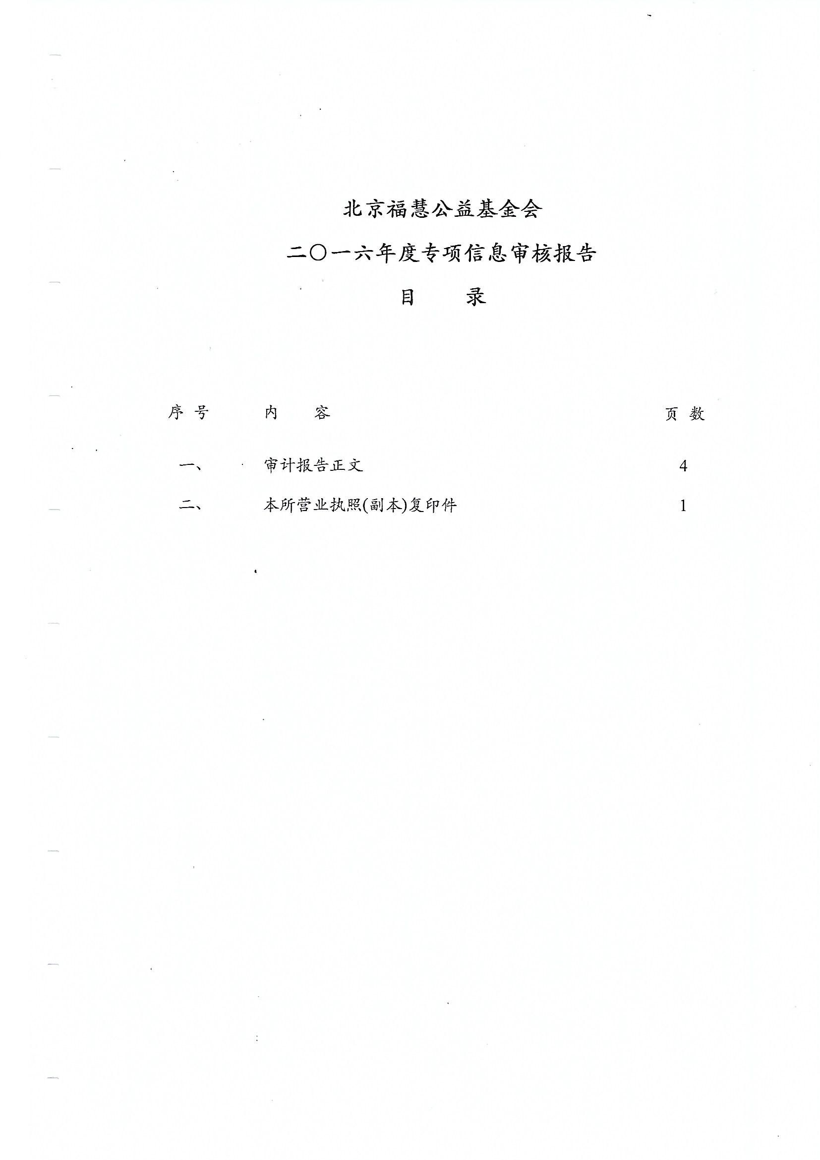 北京福慧公益基金会 2016年度专项信息审核报告-审计报告-北京福慧公益基金会