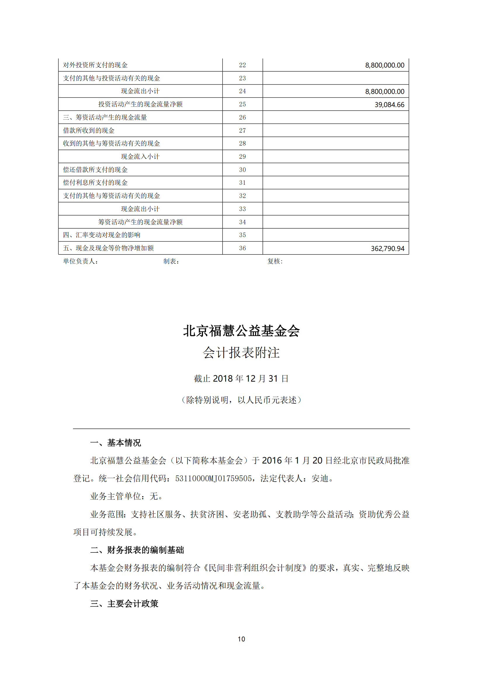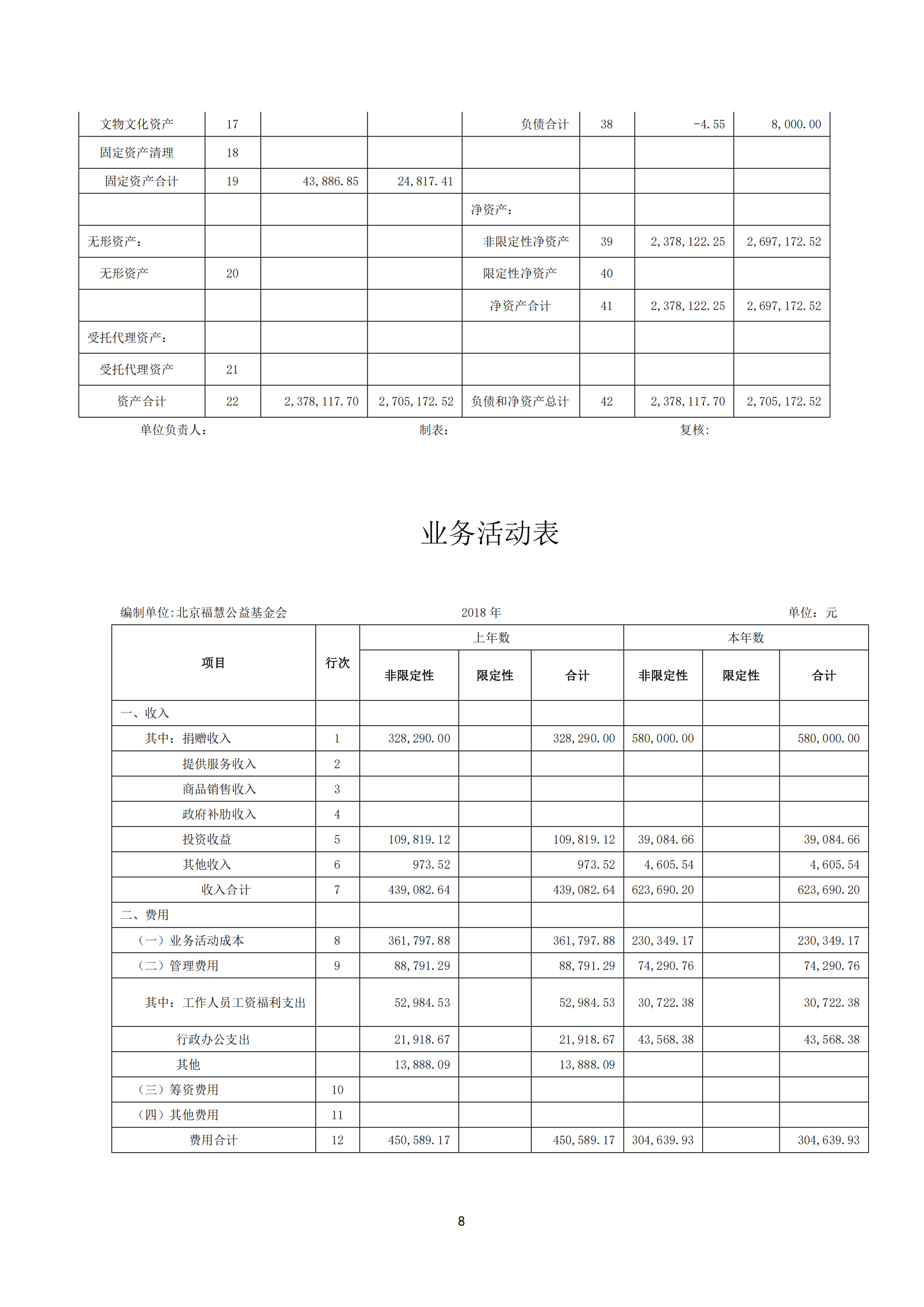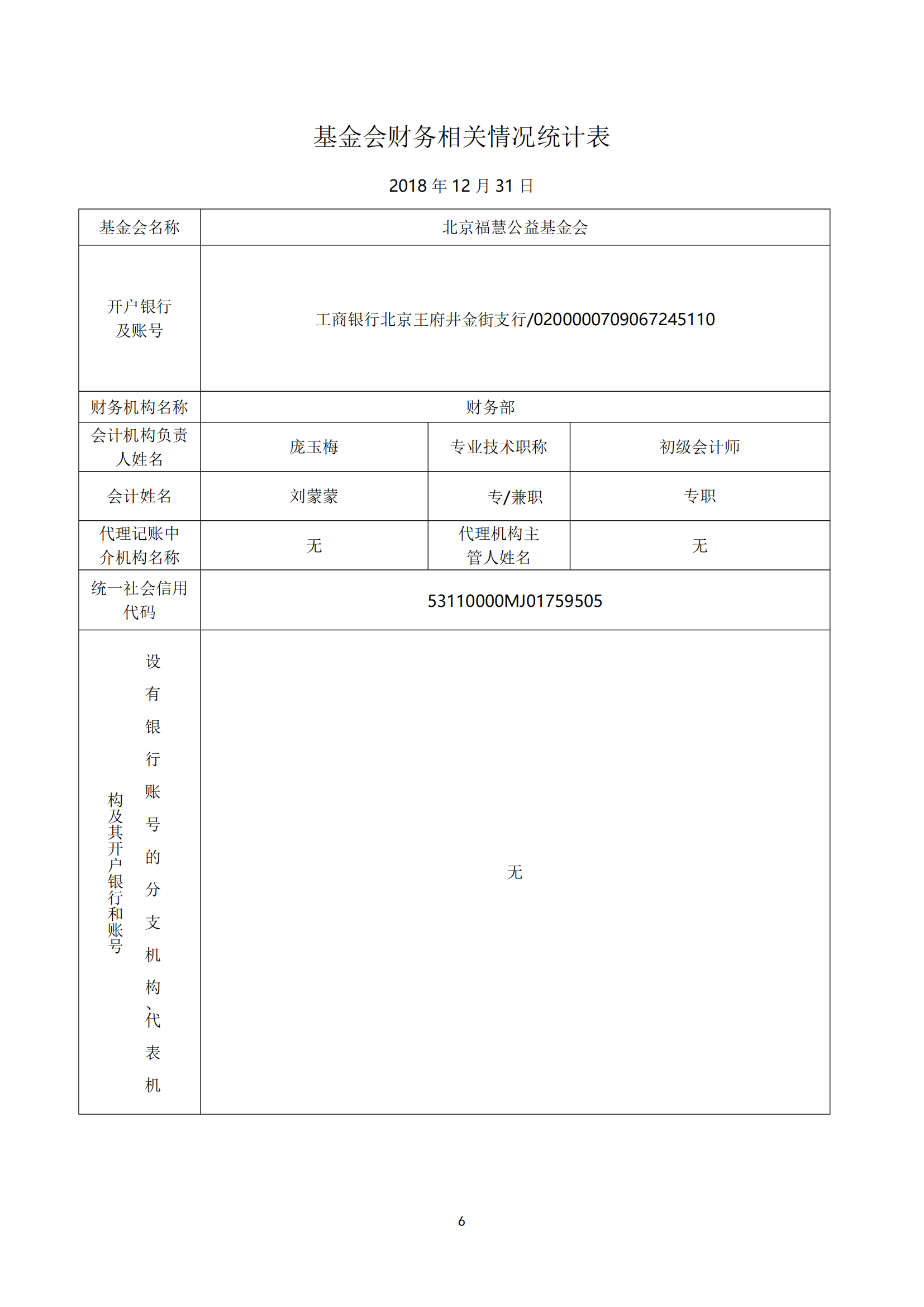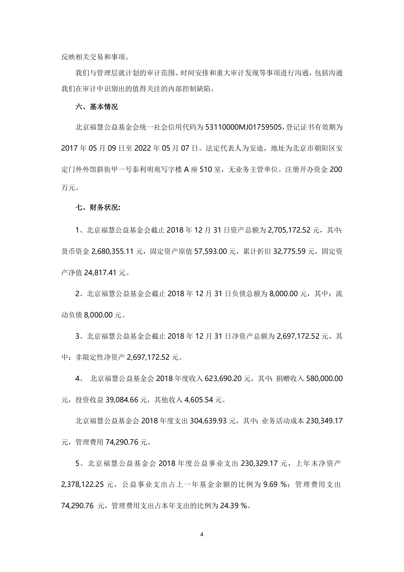 北京福慧公益基金会 2018年度财务审计报告