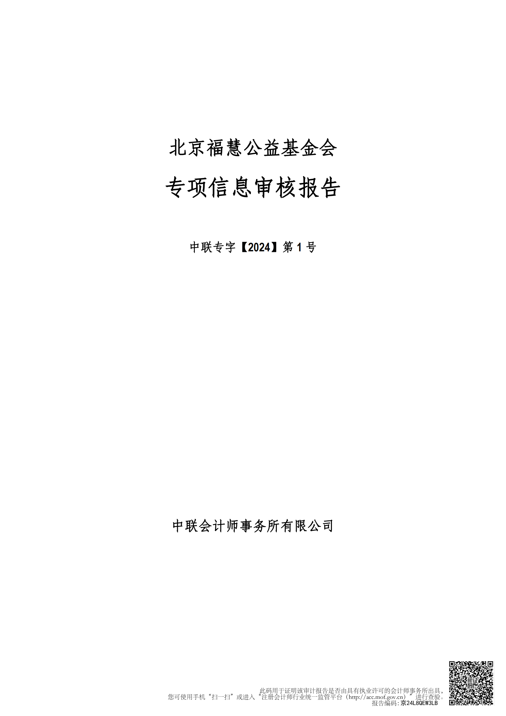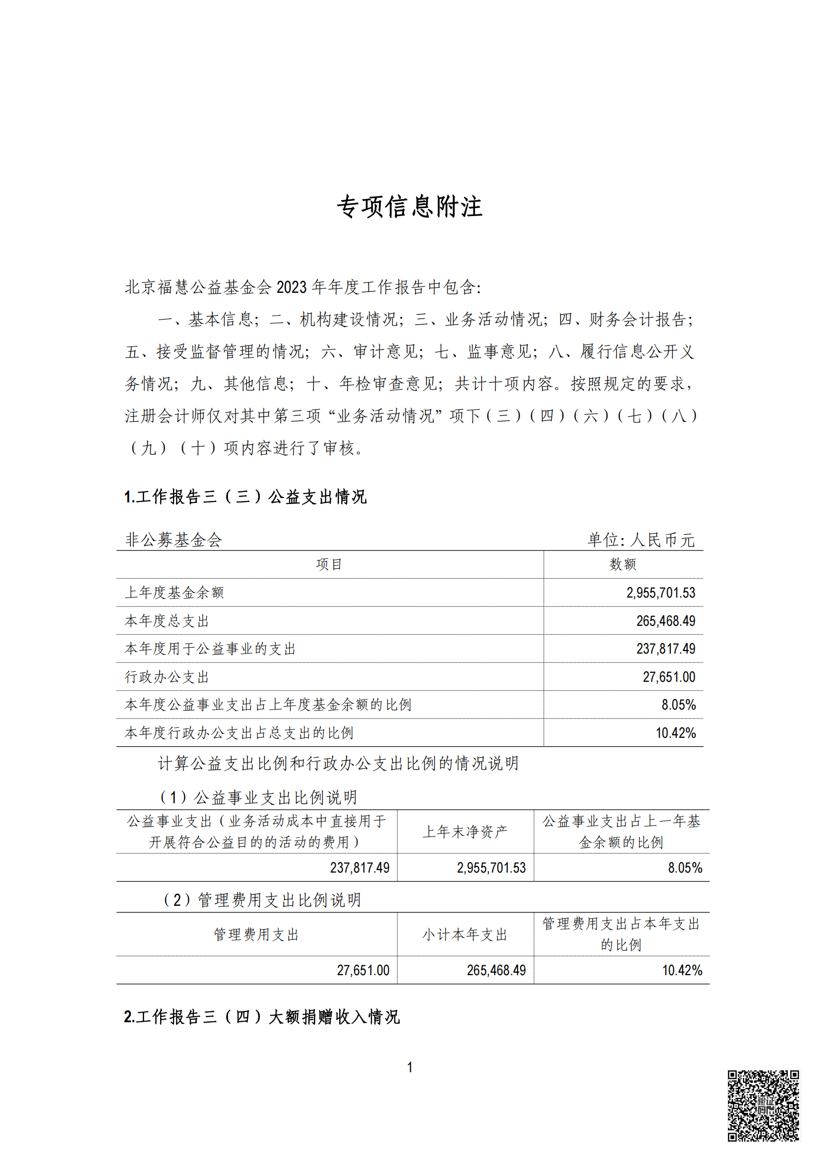 北京福慧公益基金会 2023年度专项审计报告-审计报告-北京福慧公益基金会