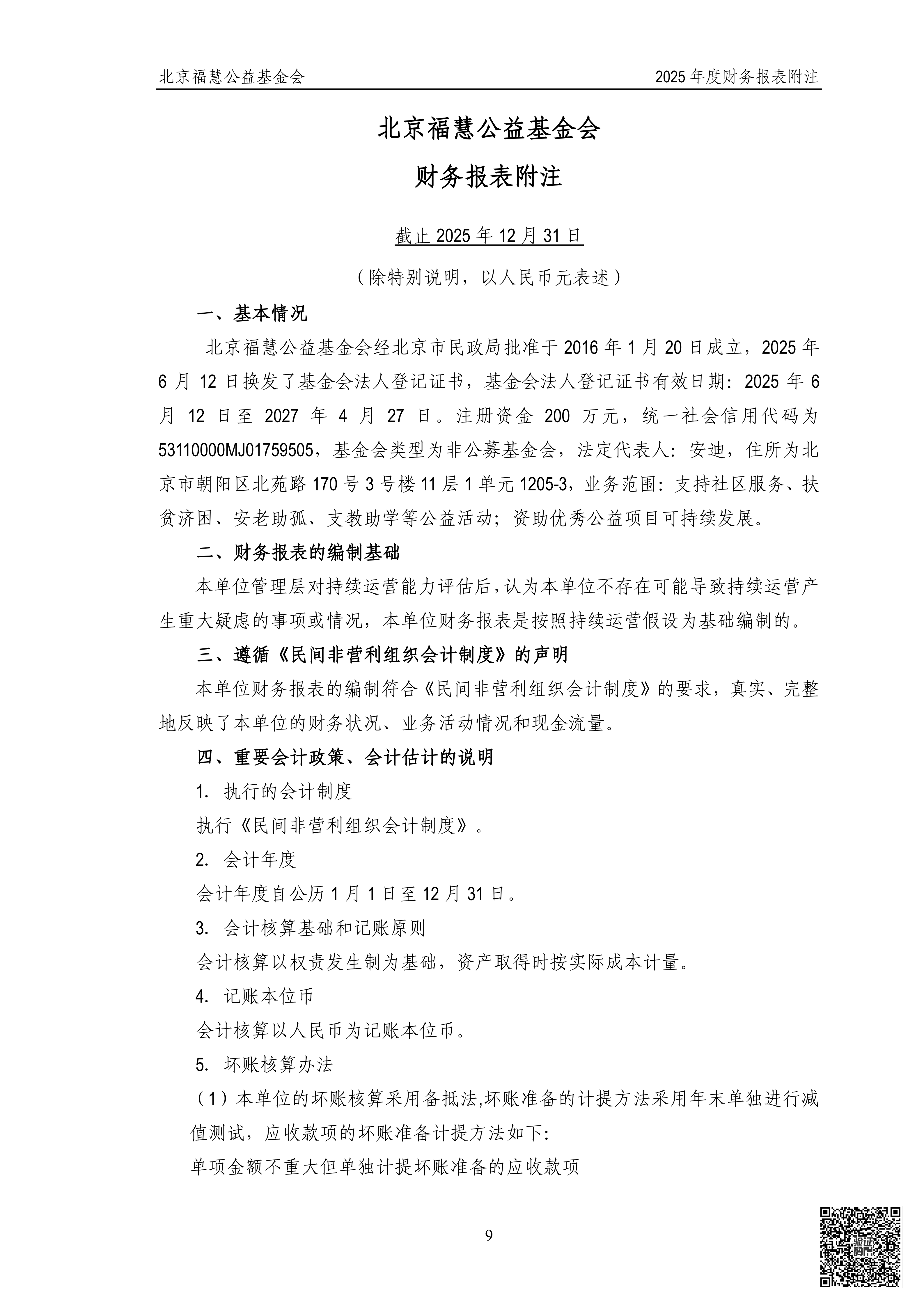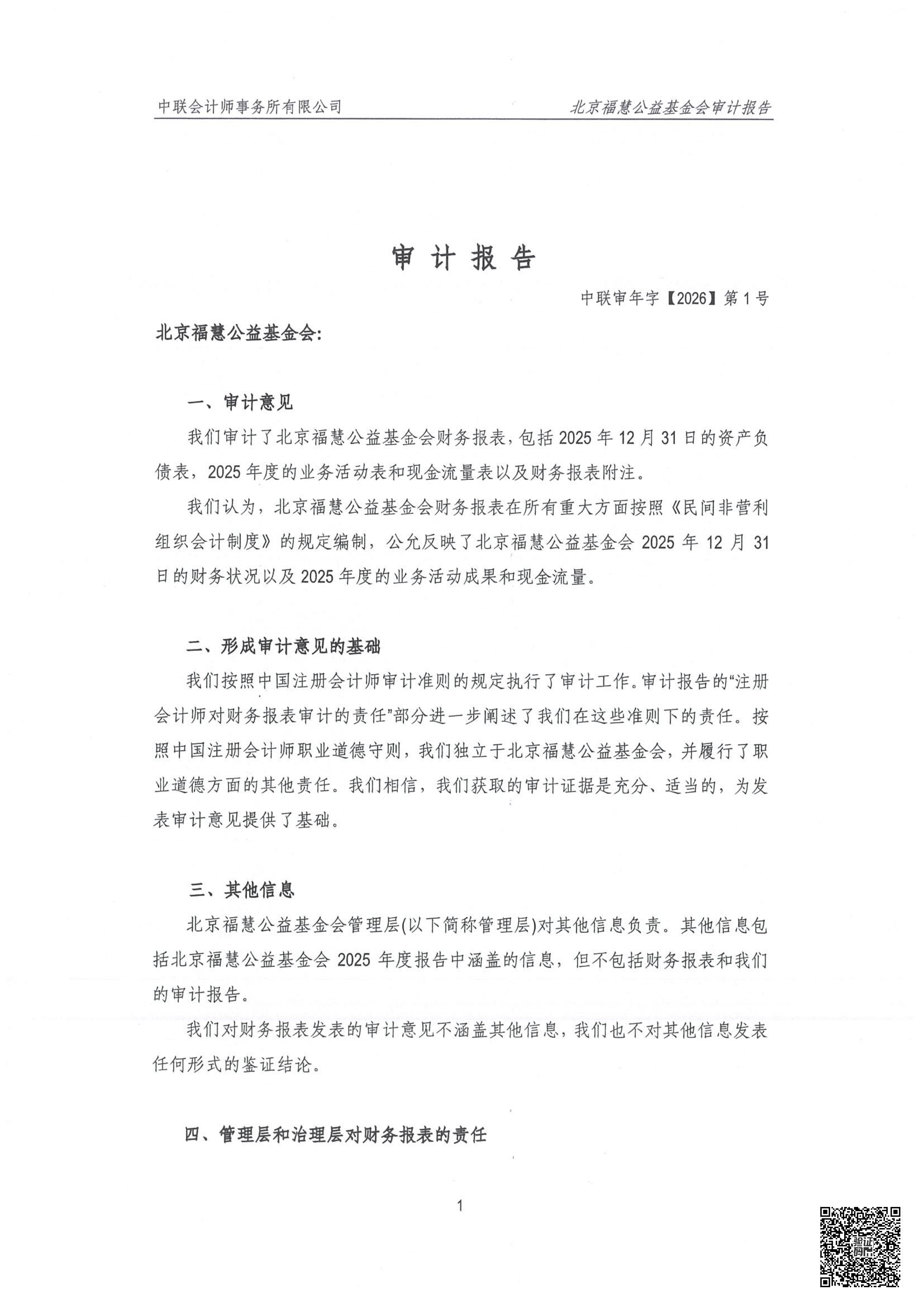 北京福慧公益基金会 2025年度财务审计报告-审计报告-北京福慧公益基金会